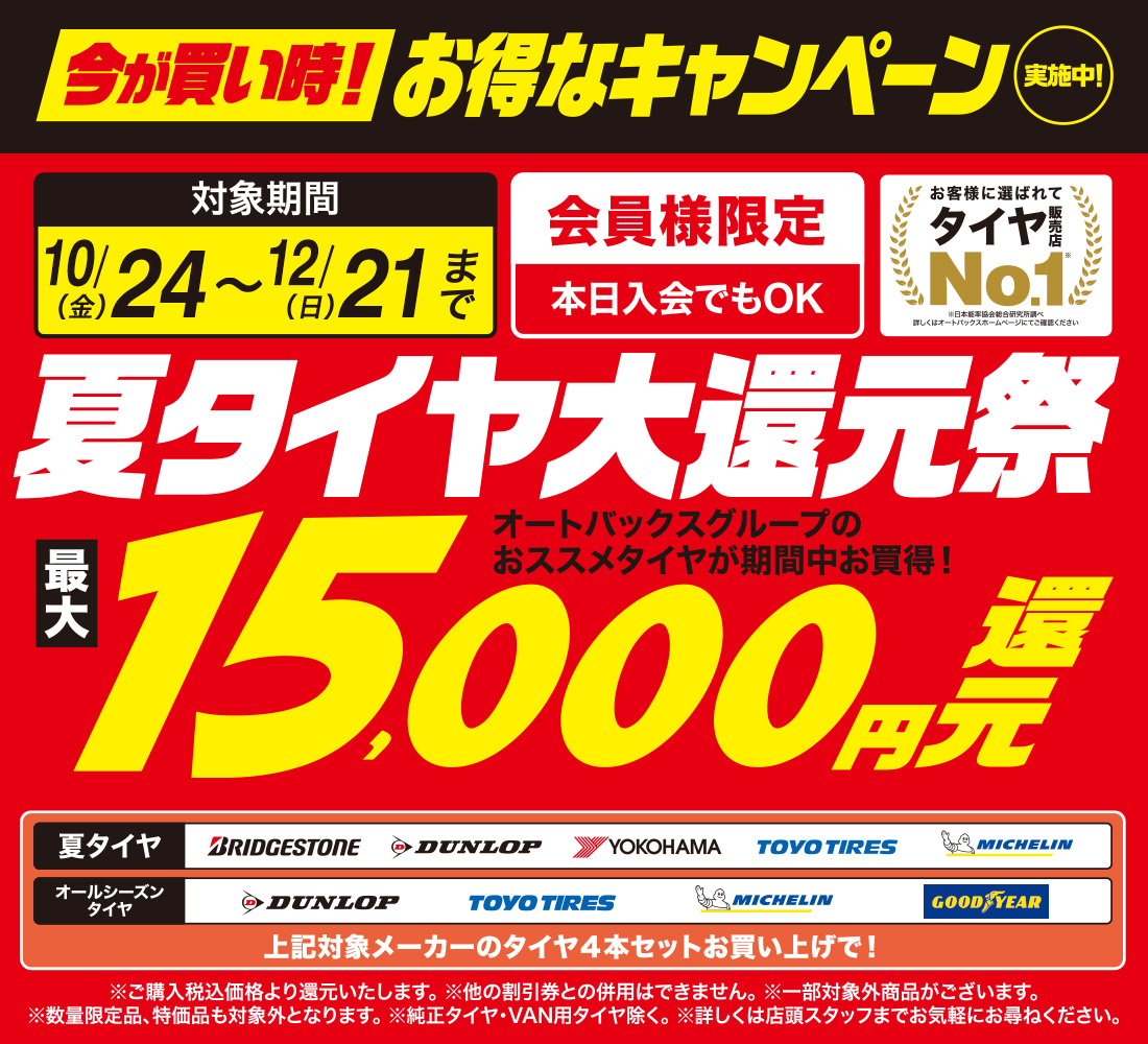 夏タイヤ大還元祭【10/24~12/21】